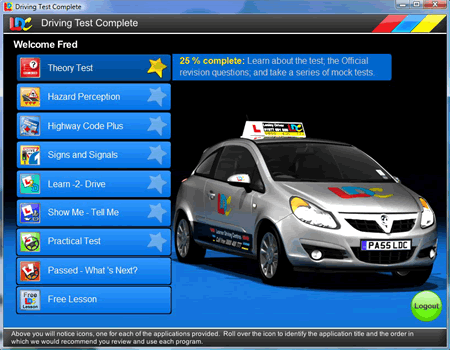 • The computer lessons are composed of over 50 interactive animated presentations with exercises, 60 video tutorials and quizzes to help you prepare for each in-car lesson in the LDC programme.