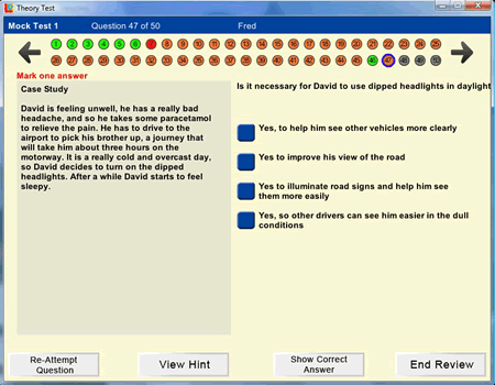 • New Fast Pass learning programme using just the the specially formulated 14 mock tests and review feature (below) for those in a real hurry to pass.